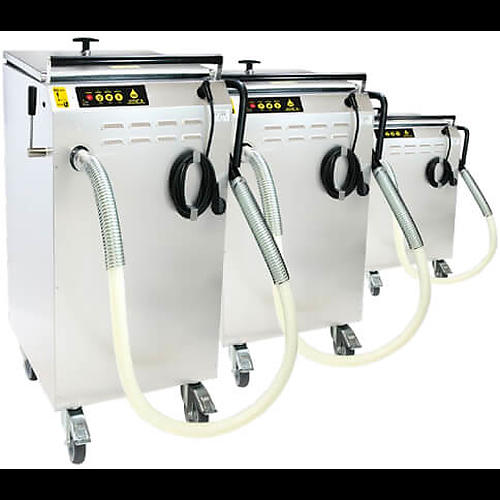The X-Series works after a simple principle with a focus on oil savings and safety: The unit creates a vacuum, sucking out the used frying oil through a hose into a self-contained and closed tank. The process of not draining the hot oil creates a safe working environment around the deep fryers. During this innovative oil removal process the frying medium must pass an environmentally friendly filter pad, a very fine microfiltration is so guaranteed without the usage of chemicals or additives. Oil savings up to 50% will be achieved by removing also the finest food and carbon particles. When the deep fryer is emptied out it can be deep cleaned while the oil is stored in the VITO X filter system. The frying medium is pumped back after the filtration process. The result? Clean oil which leads to a tasty fried product and a well fed, satisfied customer. The VITO X-Series is available in three different sizes: tank volume up to 73lbs.; up to 137lbs. and up to 219lbs.